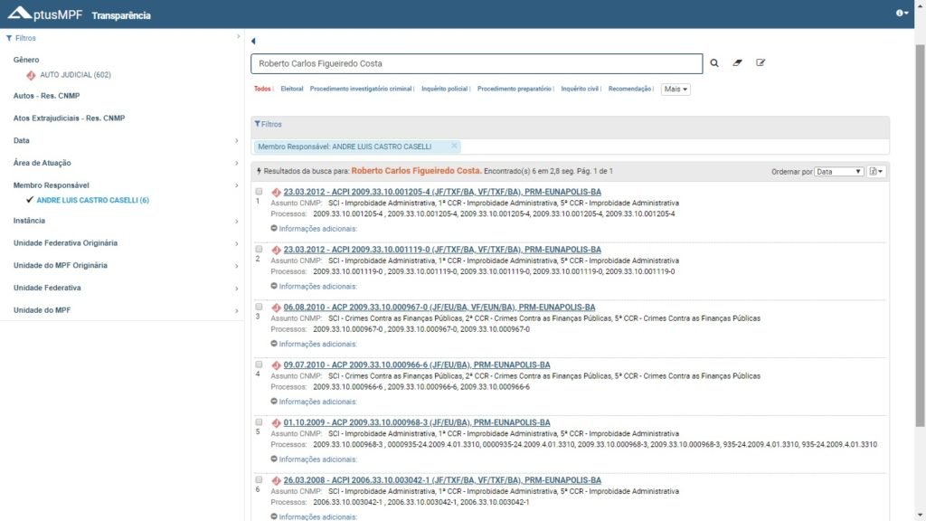 Já no site do Ministério Público Federal, o ex-prefeito é réu em pelo menos 06 processos de Improbidade Administrativa.