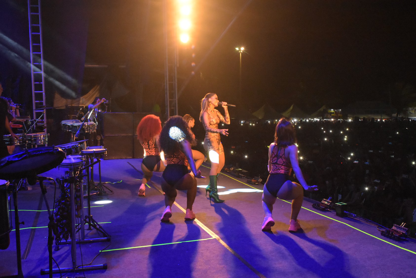 À noite, antes da funkeira mais famosa do Brasil subir ao palco, teve Banda Vibração e Dibandeja. O encerramento da folia ficou por conta de Papazoni agitando a galera depois de Anitta.