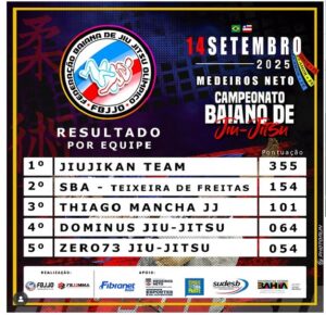 Sob a liderança do Grão Mestre João Eugênio Coelho, conhecido como Grão Mestre Kaxambu, a equipe Jiujikan brilhou na 5ª Etapa do Campeonato Baiano da Federação Baiana de Jiu-Jitsu Olímpico. O evento, realizado na cidade vizinha de Medeiros Neto, teve uma participação impressionante, reunindo mais de 500 atletas em um dia repleto de emoção e competição acirrada.