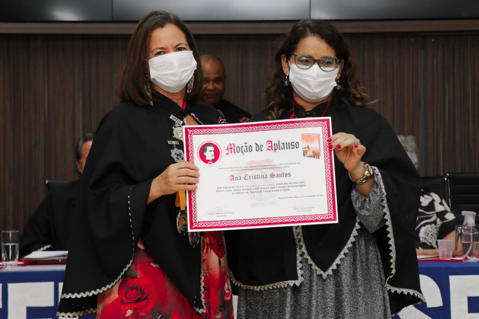 A escritora e poetisa canariense, Ana Cristina Santos, recebeu na última quinta-feira (01) na Academia Teixeirense de Letras, em Teixeira de Freitas (BA), moção de aplausos pelo lançamento do livro “O amor é mais forte que a morte”. O evento contou com a presença de escritores renomados de toda região, entre eles, o conceituado escritor e jornalista Athyilla Borborema, que também é presidente da instituição.