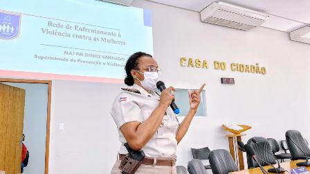Já a major Denice Santiago iniciou a sua palestra em Mucuri dizendo que violência doméstica é uma demanda da sociedade e parabenizou a iniciativa da gestão municipal em envolver outras secretarias nesta luta além da Assistência Social. “É uma rede de atendimento e sustentação. Um pescador precisa que a rede esteja inteira, linhas juntas trabalhando na missão de segurar o peixe. Assim é nossa rede, todas as secretarias juntas trabalham pela vida daquela mulher, como também pela família, bairro, cidade e Estado. Porque se a mulher sofre violência, toda sociedade sente os reflexos, direta ou indiretamente”, ressaltou a major.