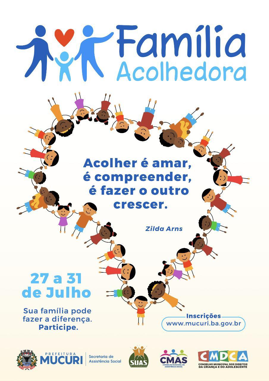 A Prefeitura Municipal de Mucuri, através da Secretaria de Assistência Social, está realizando o Serviço de Família Acolhedora. São ações voltadas ao serviço de acolhimento a crianças e adolescentes afastados do convívio familiar, em função de abandono e/ou cujas famílias encontram-se, temporariamente, impossibilitados de cumprir suas funções de cuidado e proteção.