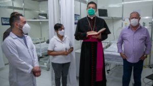 Antes do início da transferência, o bispo Dom Jailton Lino esteve no hospital de campanha para uma bênção especial. Na oportunidade, ele pediu a misericórdia e proteção aos pacientes e trabalhadores que passarem pela unidade durante a pandemia do novo coronavírus.