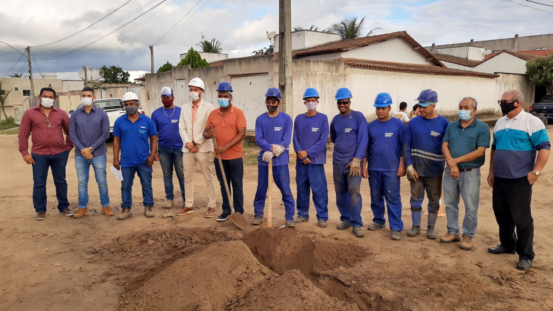 Acompanhado do gerente regional da EMBASA, o engenheiro Severino Evangelista; do gerente local da EMBASA, o biólogo Moabe Alves; da engenheira civil responsável pela obra, Letícia Cabral; do diretor municipal de obras em Itabatã, Pedro Lago; dos representantes da empresa executora Soares Dias Saneamento e Construção Ltda e dos vereadores Ademar Amaral de Souza (PSB), Roberto Silva dos Santos Júnior (DEM), Carlos de Jesus Brito, o “Carlinhos da Ótica” (REPU) e Edison Silva de Mattos, o “Sula” (PSC), o prefeito Robertinho lançou o início das obras de saneamento básico pelas ruas Peru e Canadá.