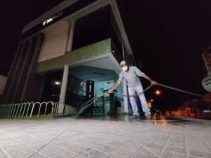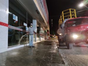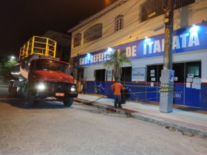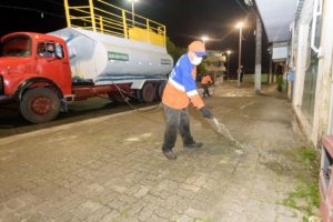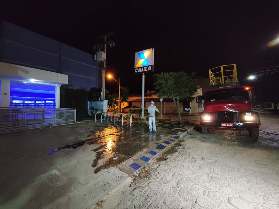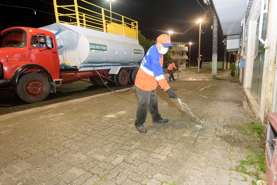 Na sede do município, a limpeza química foi realizada na madrugada de sábado pra domingo nas principais ruas do centro, Rodoviária, em frente às agencias bancárias, casa lotérica, farmácias, panificadoras, supermercados, prefeitura e em locais onde circulam grande quantidade de pessoas.