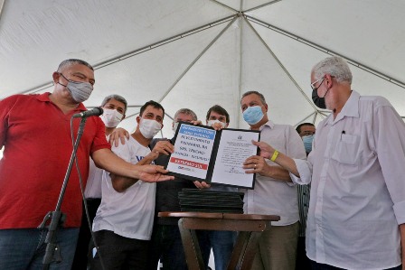 “Estamos fazendo mais uma entrega simbólica, mas nos próximos dias nós vamos concluir o compromisso que eu assumi de entregar esse kit básico com quatro itens, de geladeira, o fogão, o colchão e botijão de gás pra facilitar um recomeço das vidas dessas famílias”, afirmou Rui.