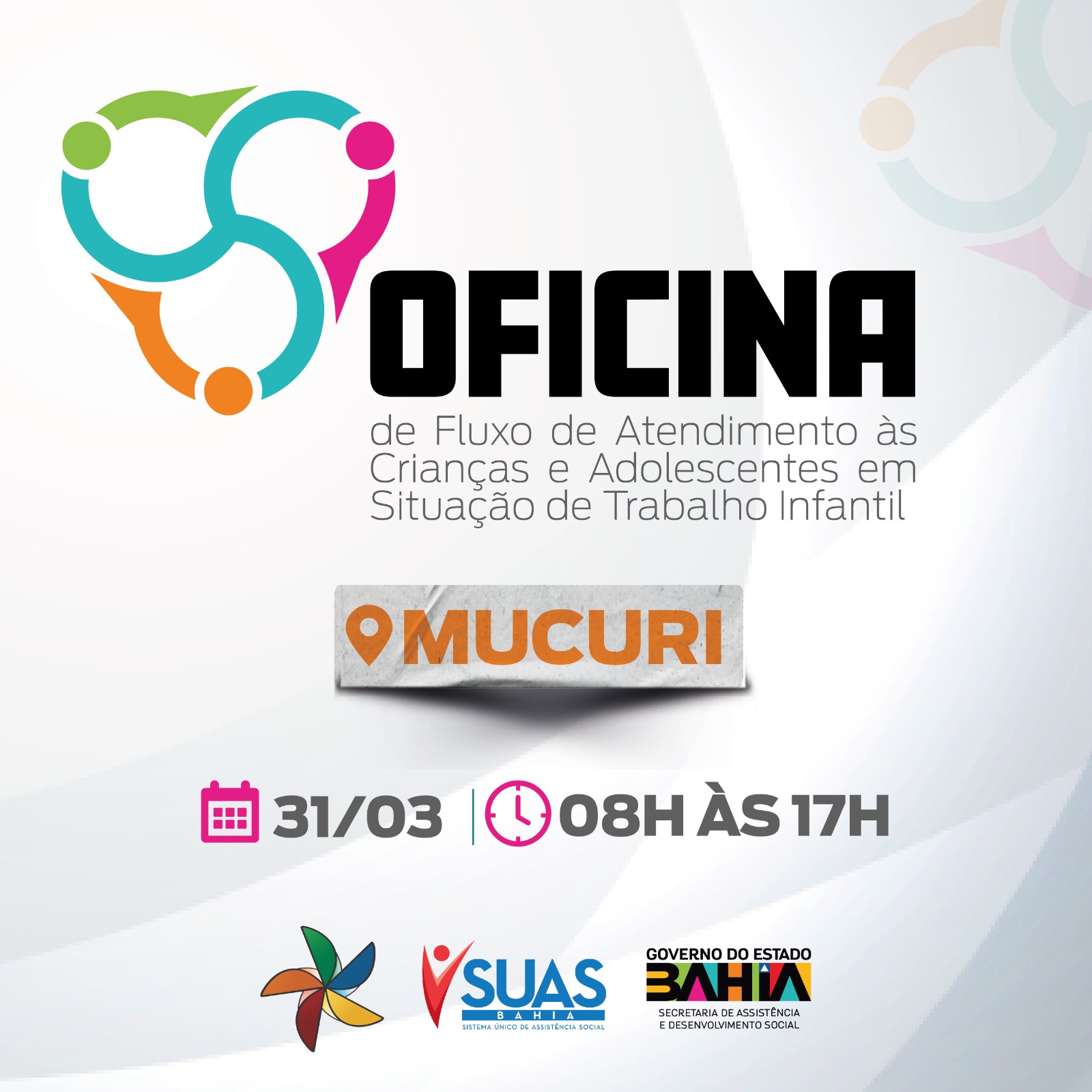 Oficinas de Fluxo de Atendimento às crianças e adolescentes em situação de trabalho infantil serão realizadas pela Secretaria de Assistência e Desenvolvimento Social da Bahia (Seades) em três cidades do interior baiano. Na terça-feira (28), a ação será realizada no município de Nova Redenção; na sexta-feira (31), em Mucuri; e na terça-feira (4), em Teixeira de Freitas.