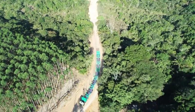 A Suzano inicia a operação de um novo sistema de logística florestal no Extremo Sul da Bahia. O projeto consiste na operação do hexatrem, um veículo que acopla seis semirreboques, totalizando 52 metros de extensão, que vai trafegar em estradas dentro das propriedades da empresa. Com esse novo modelo de movimentação, a companhia ganha produtividade no transporte de madeira que abastece a Unidade Mucuri e garante mais segurança no trânsito ao reduzir o número de veículos trafegando nas rodovias da região.
